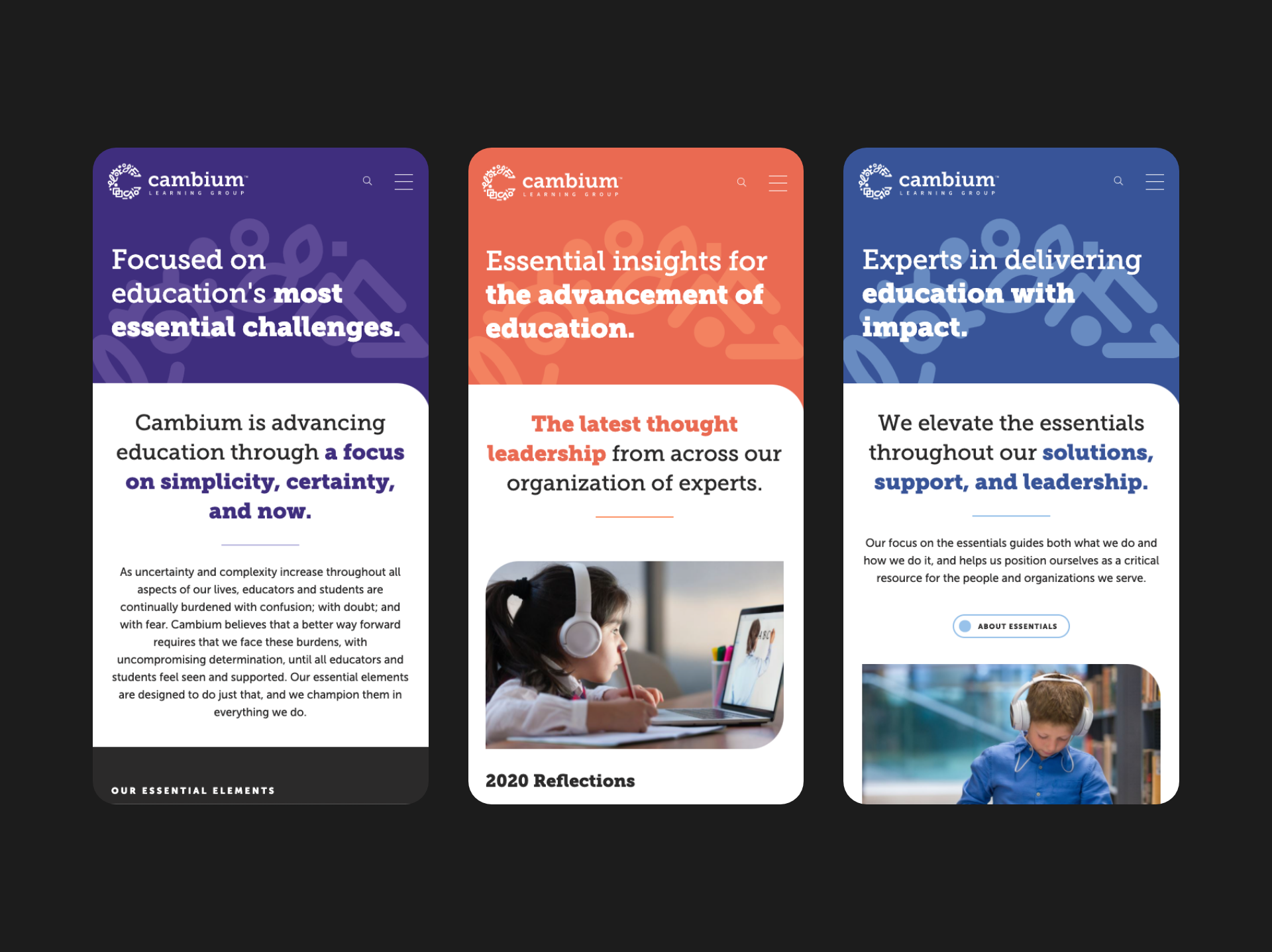 As the design lead, I worked closely with our creative and development teams to strategize, design, and execute a memorable brand and UI/UX experience that positioned Cambium Learning as the education technology leader they are.