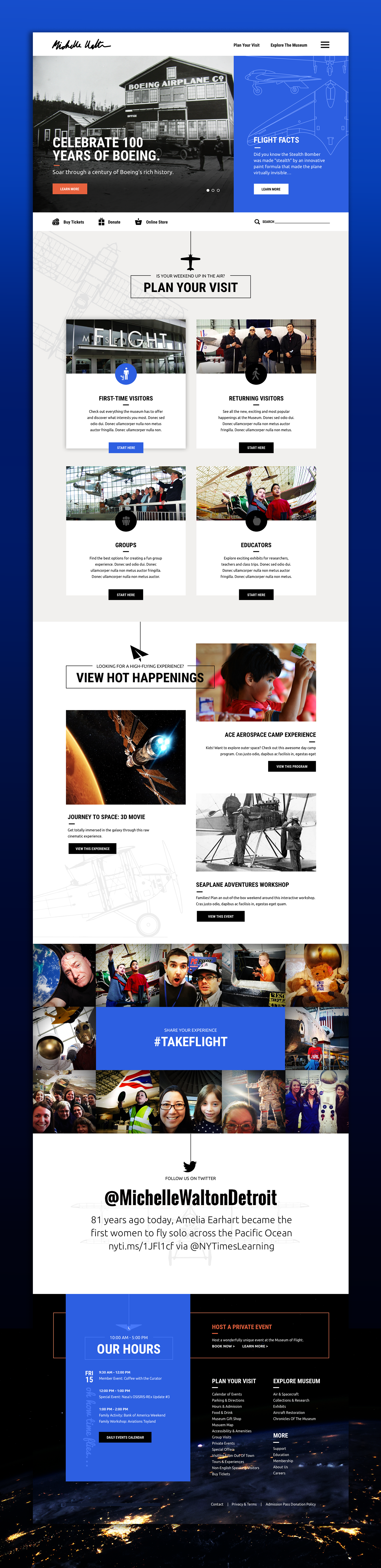 The goal of this design was to create a look and feel that weighted heavily towards black and white, representing the great history of the museums artifacts, and pair it with bright poppy colors that would attract the attention of our visitors and draw their eyes towards the content, visuals, and CTA’s that mattered most.